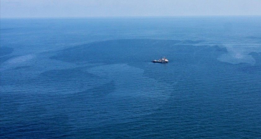 Patlama sonucu denizin yüzeyinde oluşan yangın, uzun uğraşlar sonucu söndürüldü.